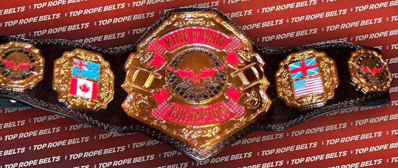 The KING of PAIN belt is our first hardcore belt. Along with the skulls, barbwire and chairs we also decided to make the flags look worn and tattered. Even in hardcore matches, don’t use your belt as a weapon!